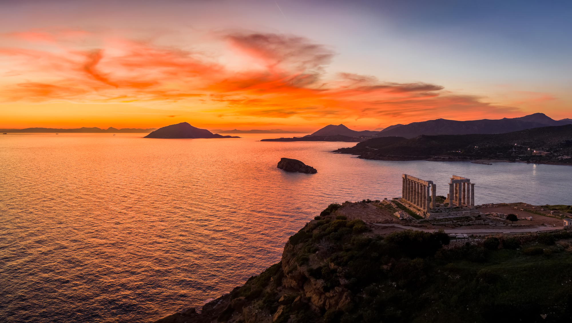 Αν το ταξίδι σου φέτος στην Ελλάδα περιλαμβάνει στάση στην Αθήνα, αυτό είναι το ηλιοβασίλεμα που δεν πρέπει να χάσεις. Το Σούνιο βρίσκεται σε απόσταση 68 χιλιομέτρων από την πρωτεύουσα, με την επίσκεψη στον αρχαίο ναό του Ποσειδώνα την ώρα του ηλιοβασιλέματος να αποτελεί must. Ένας ιερός τόπος για τους Αρχαίους Έλληνες και κυρίως για τους ναυτικούς, οι οποίοι άφηναν δώρα ή έκαναν θυσίες ζώων για να εξευμενίσουν τον θεό Ποσειδώνα. Ένα μέρος με ιδιαίτερη αύρα που θα σε μαγέψει…