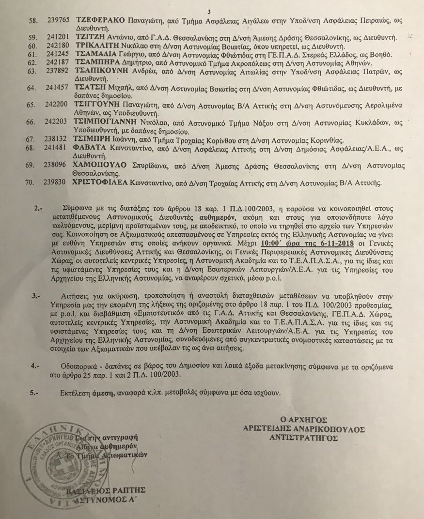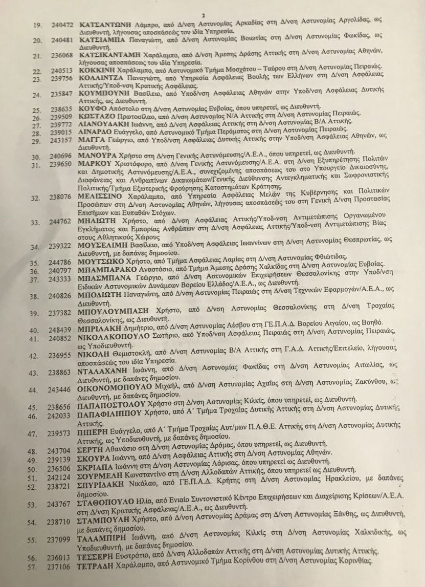 Οι μετακινήσεις- τοποθετήσεις των αστυνομικών διευθυντών: