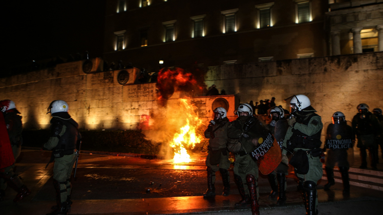 Η επίθεση σημειώθηκε από την πάνω πλευρά της Βουλής, απ’ όπου και αποχωρούν τα βουλευτικά οχήματα, ενώ επεισόδια είχαν σημειωθεί και στο Σύνταγμα στο συλλαλητήριο κατά της συμφωνίας για το όνομα της ΠΓΔΜ.