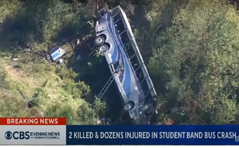 Το λεωφορείο, στο οποίο επέβαιναν μέλη της φιλαρμονικής ορχήστρας του λυκείου Φαρμινγκντέιλ, εξετράπη της πορείας του και έπεσε σε χαράδρα περίπου 15 μέτρων.