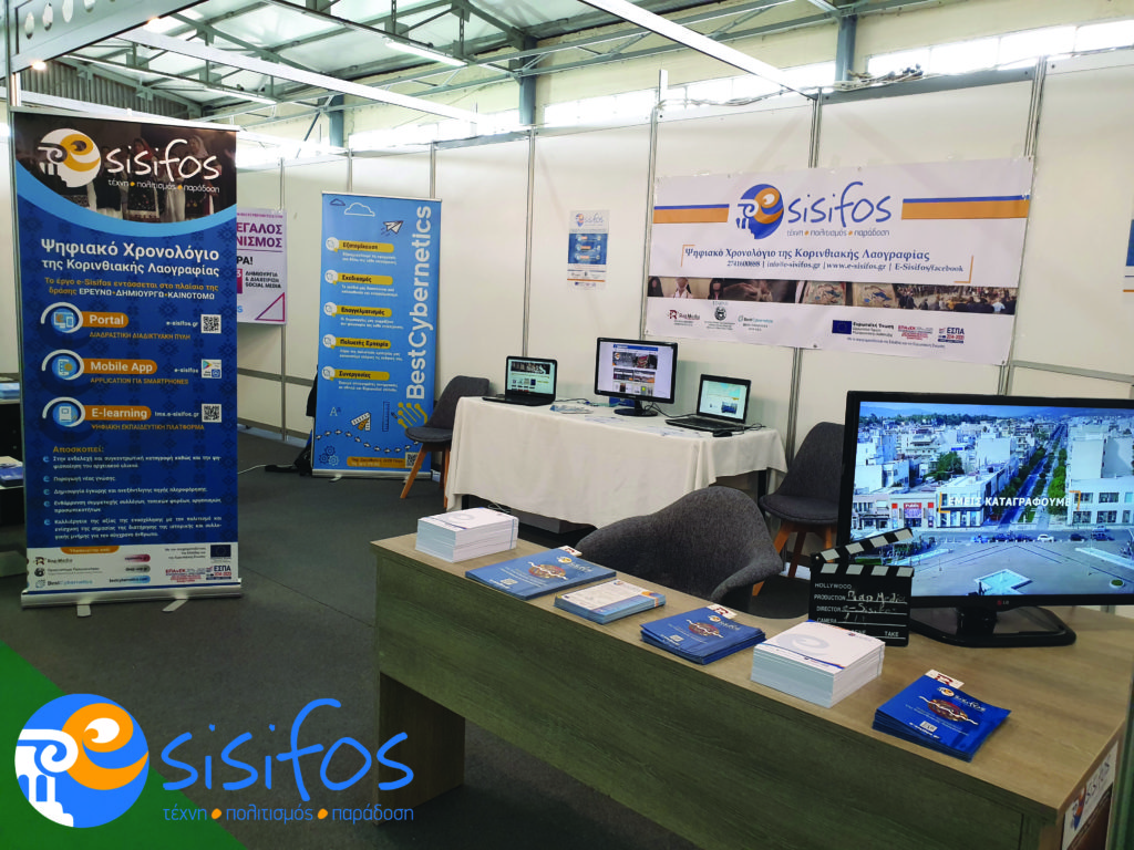 Το e-Sisifos: Ψηφιακό Χρονολόγιο της Κορινθιακής Λαογραφίας, στο πλαίσιο της διάχυσης του έργου και της εξωστρέφειας, βρέθηκε εκεί, συνομίλησε με επισκέπτες της έκθεσης, παρουσίασε την διαδικτυακή πύλη και τα ψηφιακά χρηστικά εργαλεία αυτής, την εφαρμογή για κινητά, καθώς και μέρος του e-Learning, που έχει δρομολογηθεί να ολοκληρωθεί εντός του τρέχοντος έτους.