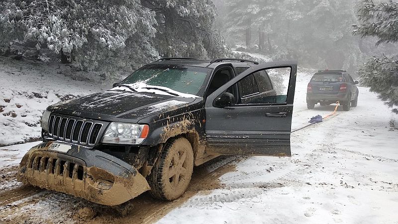Οι συνθήκες στην περιοχή δεν ήταν και τόσο καλές αφού επικρατούσε χιονόπτωση με δυνατό αέρα και πολύ κρύο …Το Jeep ήταν χωμένο & τρακαρισμένο μέσα σε λάσπη-πηλό μισό μέτρο το οποίο είχε παγώσει απο χθες … Χρειάστηκε να βγει με “βίαιο” τράβηγμα ,,,