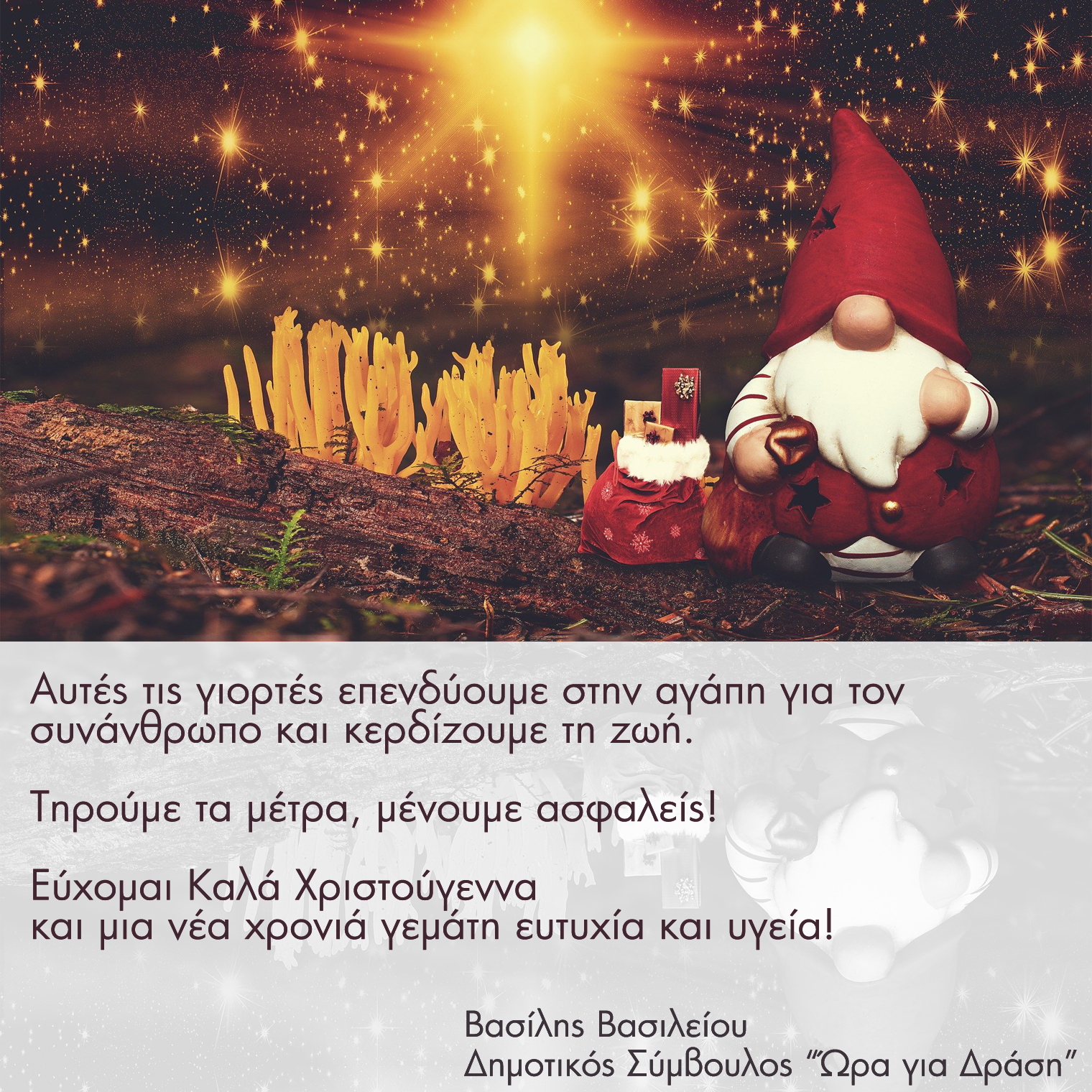 Το δικό του ξεχωριστό μήνυμα και τις ευχές, στέλνει μέσω του loutraki365.gr, ο δημοτικός σύμβουλος του συνδυασμού "Ώρα για Δράση", Βασίλης Βασιλείου...