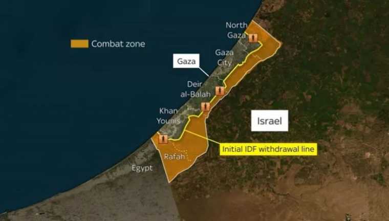 Η «κίτρινη γραμμή» εντός της οποίας το Ισραήλ θέλει να οριοθετήσει τη Γάζα:
