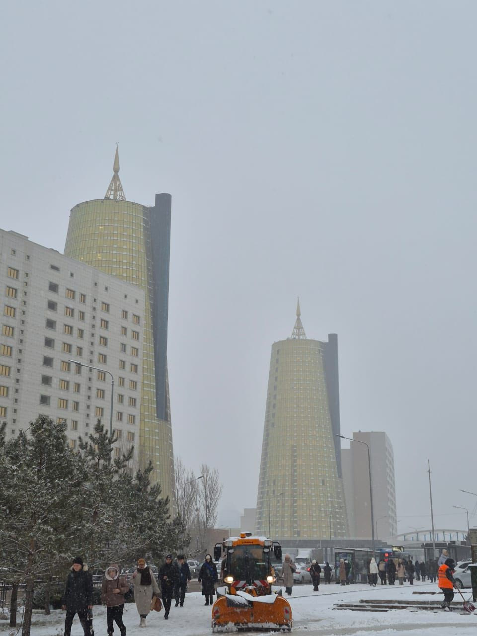Η θερμοκρασία στην Αστάνα τη Δευτέρα (8/12) αγγίζει τους -2 βαθμούς κελσίου με το σκηνικό να είναι γεμάτο χιόνι. Παρόλα αυτά η ζωή συνεχίζεται κανονικά, με σειρά εκχιονιστικών να δουλεύουν αδιάκοπα.