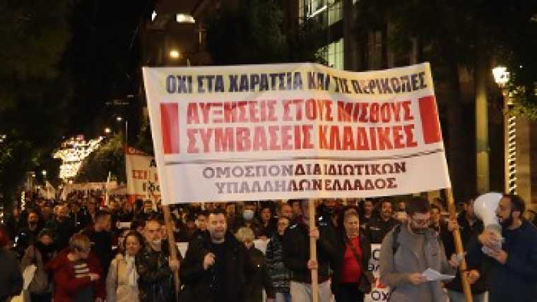 Με πρωτοβάθμια και δευτεροβάθμια σωματεία να ζητούν έξω από τη Βουλή την απόσυρση του νομοσχεδίου για τις συλλογικές συμβάσεις, η κυβέρνηση υπεραμύνεται των αλλαγών, επιμένοντας ότι ανοίγει τον δρόμο για την ενίσχυσή τους και για αυξήσεις μισθού, τον οποίο έχει αναθέσει στον αλγοριθμικό μηχανισμό του κράτους.