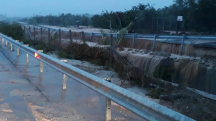 Από τη σφοδρή βροχόπτωση που έφερε ο κυκλώνας «Ζορμπάς» στο νομό Κορινθίας πλημμύρισε και η νέα εθνική οδός Πατρών-Αθηνών.