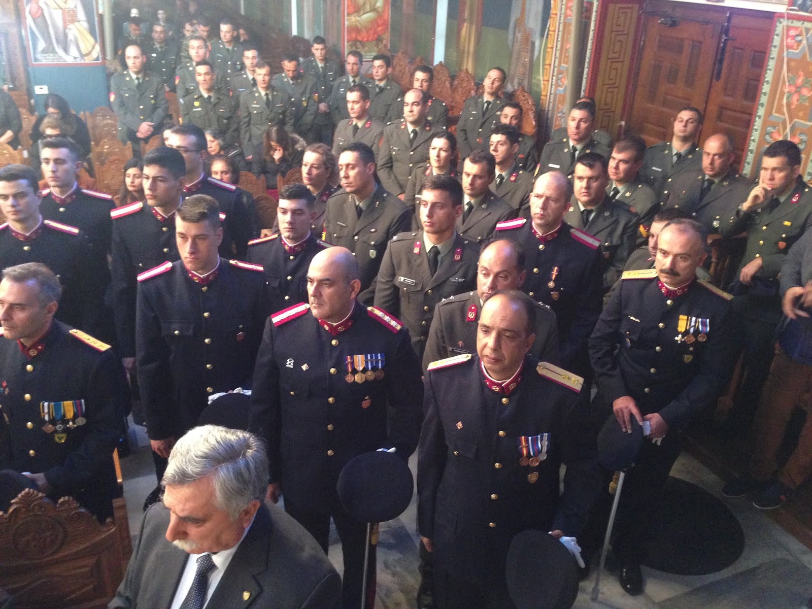 Μετά το τέλος της λειτουργίας εκφωνήθηκε ο πανηγυρικός της ημέρας από αξιωματικό της Σχολής Μηχανικού Λουτρακίου.