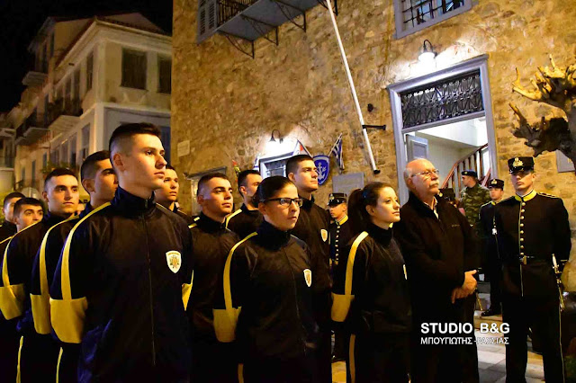 Οι 90 Ευέλπιδες που βρίσκονται από σημερα στην πόλη συμμετείχαν το Σάββατο το απόγευμα στην Λαμπαδηδρομία και άναμμα του Βωμού μπροστά στο πολεμικό Μουσείο που σηματοδότησε και την έναρξη του Μαραθωνίου Ναυπλίου.