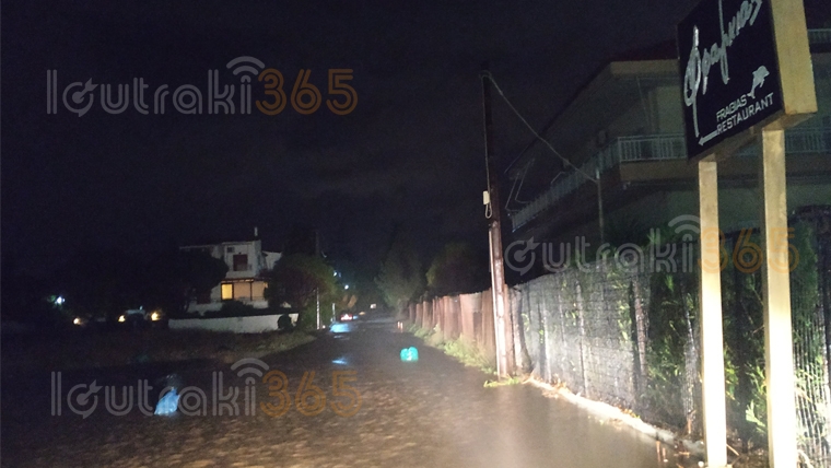 Η Αστυνομία έχει αποκλείσει την κυκλοφορία των οχημάτων προς τον παραλιακό δρόμο του Λουτρακίου, από την οδό Αιγαίου στο ρεύμα προς Κόρινθο και από το Palladar στο ρεύμα προς Λουτράκι, καθώς τα νερά στη Λεωφόρο Ποσειδώνος από το ύψος του Cocoon μέχρι και την Πλώρη, έχουν μετατρέψει το δρόμο σε ποτάμι. Μάλιστα, ΙΧ αυτοκίνητο είχε ακινητοποιηθεί στη μέση του δρόμου δυσκολεύοντας ακόμα περισσότερο την κυκλοφορία των οχημάτων.