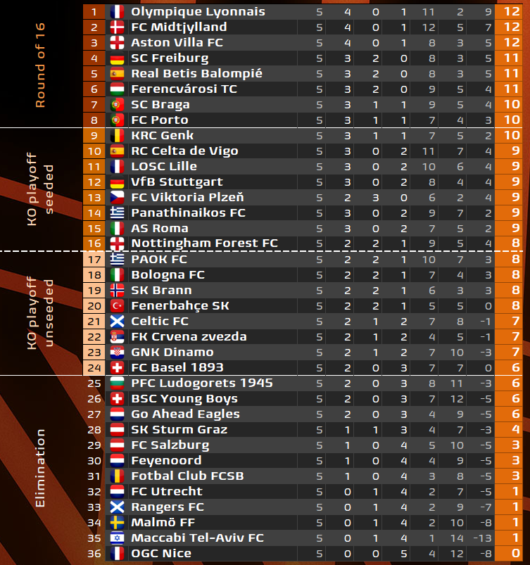 Νωρίτερα (19:45) και για την ίδια διοργάνωση, ο ΠΑΟΚ έχει αγώνα στην έδρα της Λουντογκόρετς. Η ομάδα του Λουτσέσκου έχει συγκεντρώσει 8 βαθμούς, βρίσκεται στις θέσεις που οδηγούν στα playoffs του Europa League, αλλά προέρχεται από απρόσμενη γκέλα με τη Μπραν μέσα στην Τούμπα. Η ομάδα από τη Βουλγαρία έχει 6 βαθμούς, όσους και η 24η του βαθμολογικού πίνακα Βασιλεία και δίνει μεγάλη μάχη για την είσοδό της στα playoffs (την προηγούμενη αγωνιστική νίκησε τη Θέλτα).