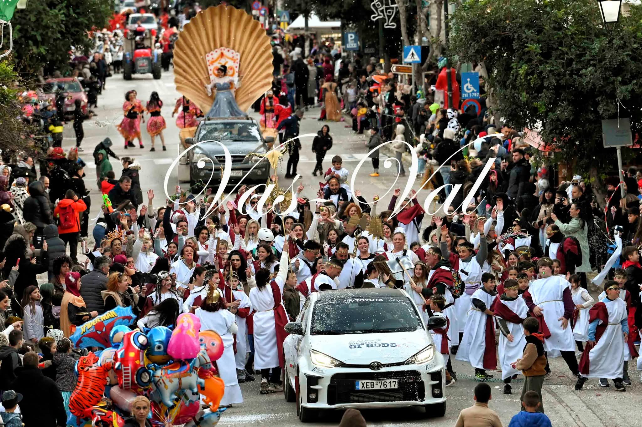 Η μεγάλη καρναβαλική παρέλαση συγκέντρωσε πλήθος κόσμου, κατοίκους και επισκέπτες, οι οποίοι συμμετείχαν ενεργά στη γιορτή, δημιουργώντας μια μοναδική ατμόσφαιρα χαράς και συλλογικότητας.