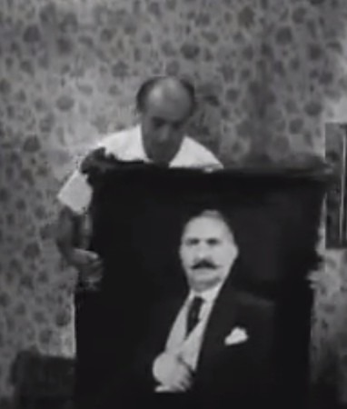 Η αποθήκη των στούντιο της Φίνος Φίλμς δεν υπάρχει πλέον για να βρούμε την εξήγηση…. Το 90lepta.com υποθέτει οτι το συγκεκριμένο πορτραίτο βρισκόταν στο “οπλοστάσιο” του σκηνογράφου Μάρκου Ζέρβα (που δούλευε για τη Φίνος φιλμ), επειδή όλες οι συγκεκριμένες ταινίες είναι σε δική του σκηνογραφία. Σε κάποιες εμπλέκεται επίσης και ο Νίκος Τσιφόρος που ήταν γνωστός χιουμορίστας και ίσως έβαλε το χεράκι του κι αυτός.