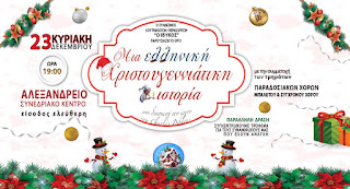 Ο '' ΙΒΥΚΟΣ'' σας προσκαλεί στην Χριστουγεννιάτικη παράστασή του με τίτλο "Μια Ελληνική Χριστουγεννιάτικη Ιστορία" μια διασκευή της κλασικής ιστορίας του Καρόλου Ντίκενς, την Κυριακή 23 Δεκεμβρίου 2018 και ώρα 19:00 στο Αλεξάνδρειο Συνεδριακό Κέντρο Λουτρακίου.