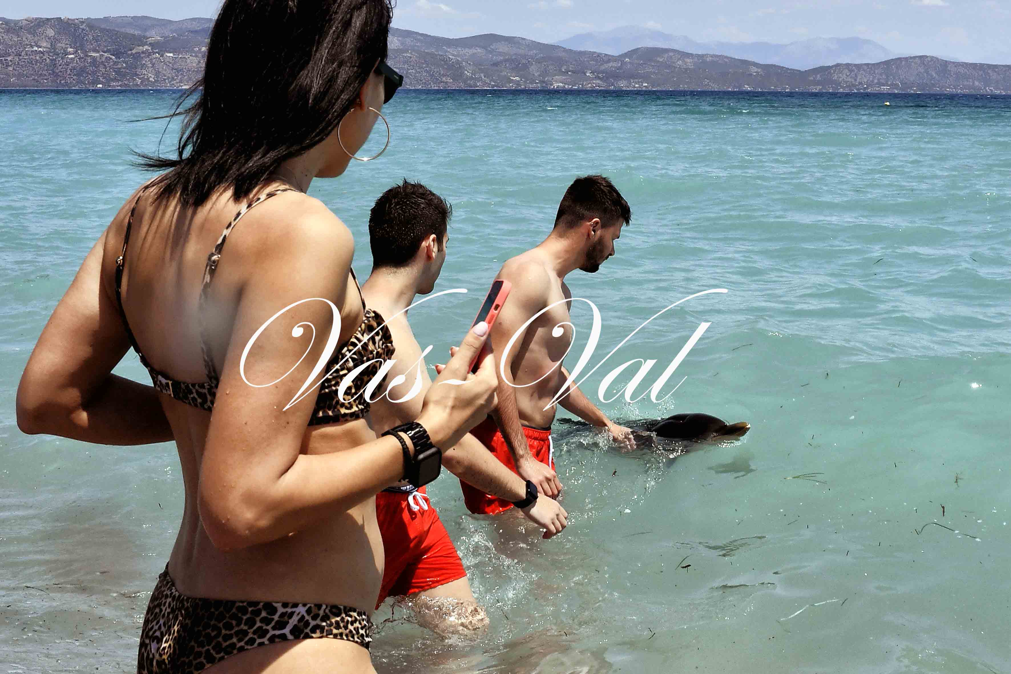 Το δελφίνι απομακρύνθηκε από τα ρηχά με ασφάλεια, χάρη στους λουόμενους που βρίσκονταν στο σημείο.