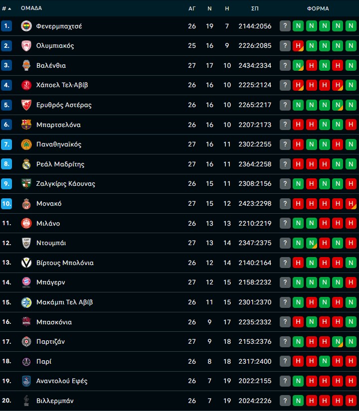Βαθμολογία EuroLeague: Βήμα πίσω για το «τριφύλλι»
