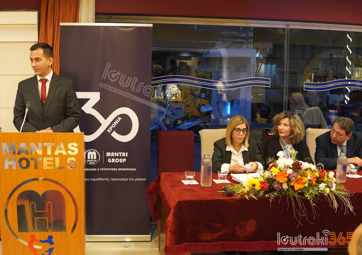 Ο Πρόεδρος του Ομίλου, κ. Βασίλης Μαντάς, στην ομιλία του, αποκάλυψε για πρώτη φορά τον αριθμό των διανυκτερεύσεων που έχουν πραγματοποιηθεί στα 4 ξενοδοχεία του ομίλου οι οποίες ξεπερνούν το 1.300.000, αλλά και το κοινωνικό πρόσωπο της εταιρείας, αναφέροντας επιγραμματικά λιγοστές μόνο από τις εκατοντάδες δράσεις της εταιρείας που αποδεικνύει συνεχώς και στην πράξη τη σημασία της ενσυναίσθησης. "Στην Κατοχή, ο πατέρας μου, είχε κινδυνεύσει να πεθάνει από την πείνα και μου έδωσε εντολή και επιθυμία να μην αφήσω κανέναν άνθρωπο να πεινάσει, εφόσον μπορώ να τον βοηθήσω. Και του το υποσχέθηκα. Τη δεκαετία της κρίσης, ο Όμιλος διέθεσε πάνω από 100 χιλιάδες γεύματα στην Εκκλησία κυρίως, αλλά και στα σχολεία της πόλης, σε πλημμυροπαθείς, σε σεισμόπληκτους, μεμονωμένες οικογένειες, πυρόπληκτους και πολλές άλλες ομάδες πολιτών. Η αίθουσα που βρισκόμαστε σήμερα, επί 30 χρόνια ήταν και παραμένει ανοιχτή σε όλους. Σύλλογοι, πολιτικά κόμματα, δημοτικές παρατάξεις, υποψήφιοι δήμαρχοι και πολλοί άλλοι, έχουν φιλοξενηθεί αφιλοκερδώς. Ενισχύσαμε οικονομικά αλλά και με όποιον τρόπο μας ζητήθηκε (όπως φιλοξενίες, αγορές εξοπλισμού και με πολλούς άλλους τρόπους) δεκάδες Συλλόγων. Επίσης έχουν πραγματοποιηθεί εκατοντάδες φιλοξενίες στα ξενοδοχεία μας για τουριστικούς πράκτορες και επισκέπτες που ήρθαν ώστε να συμβάλλουν στην αναβάθμιση του Δήμου μας. Παράλληλα, σε μόλις 7 χρόνια λειτουργίας, το L-Medical, πραγματοποιήθηκαν 11.172 δωρεάν διαγνωστικές εξετάσεις σε συμπολίτες μας που δεν είχαν την οικονομική δυνατότητα", ανέφερε μεταξύ άλλων.