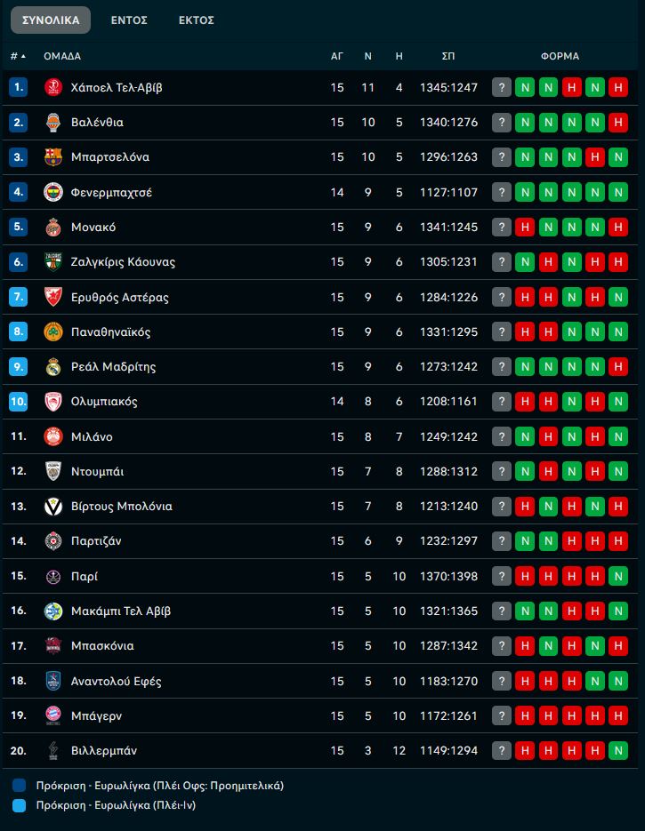 21:05 Χάποελ Τελ Αβίβ-Ερυθρός Αστέρας