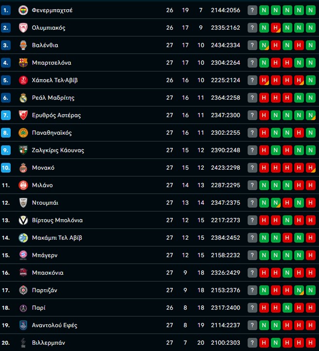 Από την άλλη πλευρά, ο Παναθηναϊκός καλείται να αντιδράσει άμεσα, καθώς την Παρασκευή 13 Φεβρουαρίου (21:15) υποδέχεται τη Φενέρμπαχτσε, σε ένα ματς που μπορεί να αποδειχθεί κομβικό για τη συνέχεια της πορείας του στη διοργάνωση.