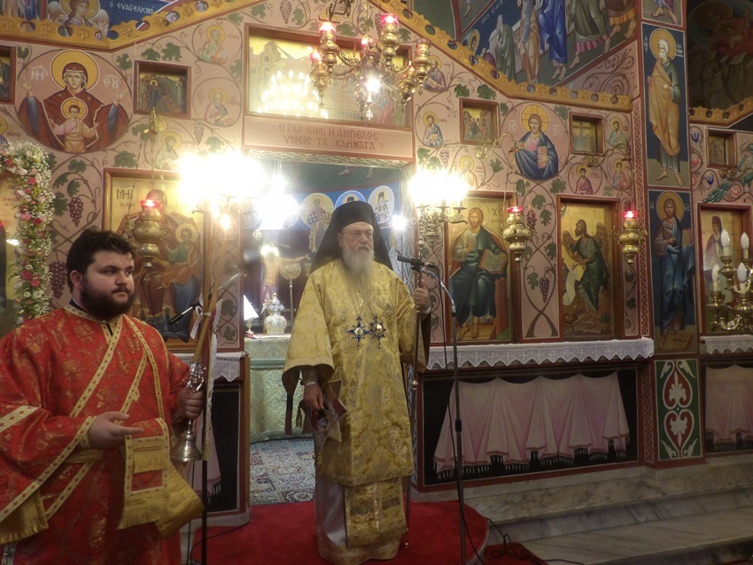 Πριν την απόλυση της Θ. Λειτουργίας ο σεπτός Ποιμενάρχης μας αναφέρθηκε στο Αποστολικό ανάγνωσμα, στην θαυμαστή βιωτή της Αγίας Αναστασίας της Φαρμακολυτρίας και στην εορτή των Αγίων Χριστουγέννων τονίζοντας ότι, αυτός που πιστεύει στην έλευση του Χριστού ως Σωτήρα και Λυτρωτή είναι αυτός που πρόκειται μέσω της πίστης του να σωθεί και να γίνει κληρονόμος της Βασιλείας του Θεού. Ολοκληρώνοντας ευχήθηκε τα εφετινά Χριστούγεννα να είναι Χριστούγεννα μαζί με τον Χριστό και όχι πέρα και μακριά από Αυτόν.