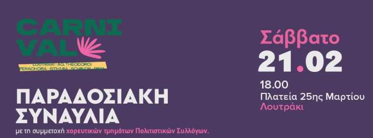 Μια γιορτινή παραδοσιακή εκδήλωση θα πραγματοποιηθει το Σάββατο 21 Φεβρουαρίου στις 18:00 το απόγευμα στην Πλατεία 25ης Μαρτίου στο Λουτράκι