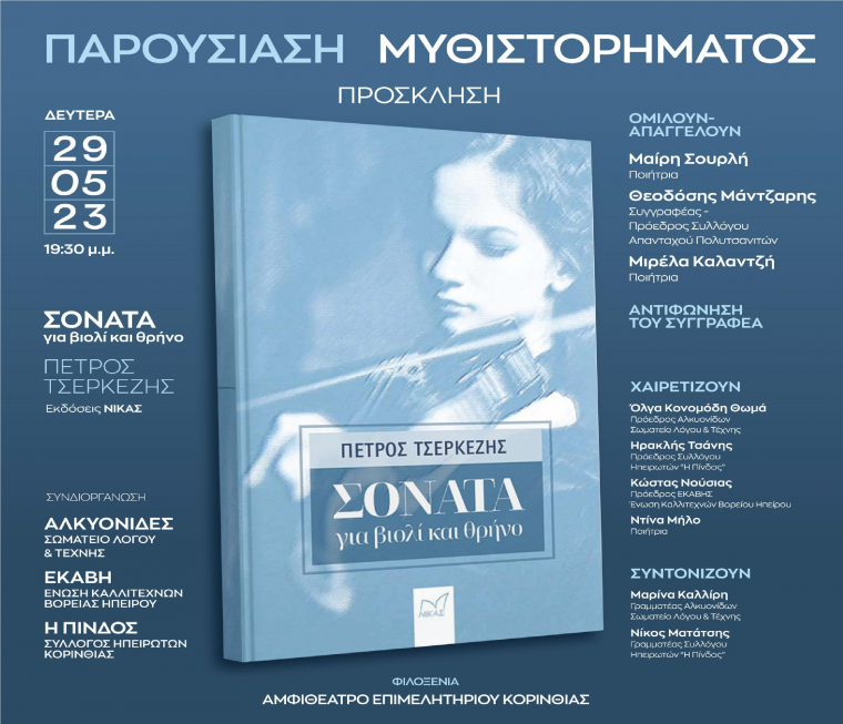 για να παρουσιάσει το τελευταίο του πόνημα, το μυθιστόρημα ''ΣΟΝΑΤΑ για βιολί και θρήνο ''.