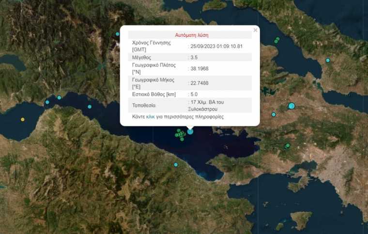Το επίκεντρο του σεισμού εντοπίστηκε 17 Χλμ. ΒΑ του Ξυλοκάστρου και το εστιακό βάθος ήταν στα 5χλμ.