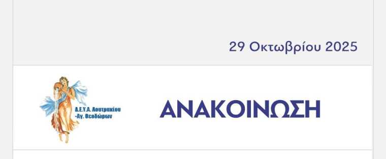 Η ΔΕΥΑΛ–ΑΓ.Θ. ενημερώνει ότι έχει ήδη ξεκινήσει κατεπείγουσα μελέτη για την αντικατάσταση των προβληματικών δικτύων στην ευρύτερη περιοχή της Δημοτική Κοινότητα Ισθμίας, λόγω θολότητας στο νερό ύδρευσης που οφείλεται σε αυξημένο σίδηρο, πιθανόν από τις σωληνώσεις και εξετάζει όλες τις πιθανές αιτίες, με στόχο την οριστική επίλυση του ζητήματος.