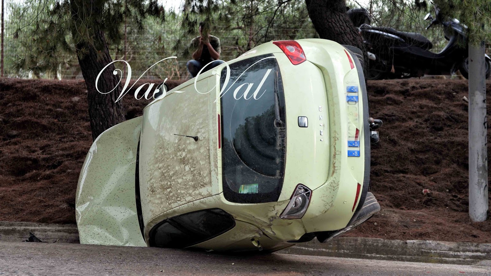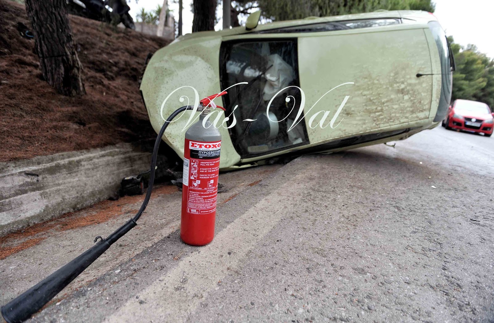 Aυτοκίνητο, εξετράπη της πορείας του και ανετράπη σημερα το απόγευμα της Δευτέρας, στην έξοδο της πόλης της Κορίνθου προς Αθήνα.