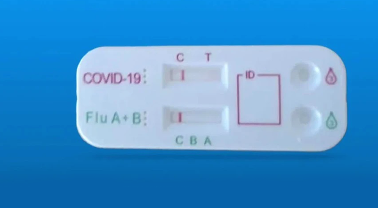 Τα τεστ γίνονται με τον ίδιο τρόπο αλλά είναι διπλά, δηλαδή βάζουμε μία σταγόνα υγρού για τον κορονοϊό και μία για τη γρίπη.