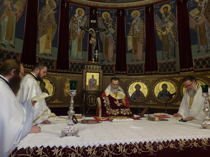 Ο Σεβ. Ποιμενάρχης μας κατά την Μεγάλη Είσοδο, όπου και τέλεσε την «Προσκομιδή» ενώπιον των πιστών, κατά την τάξη της συγκεκριμένης Θείας Λειτουργίας, αναφέρθηκε στο ιδιαίτερο πρωτοχριστιανικό τελετουργικό της, αναλύοντας με λεπτομέρεια και επεξηγώντας όπου εκείνος έκρινε σκόπιμο.