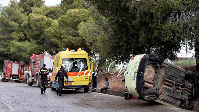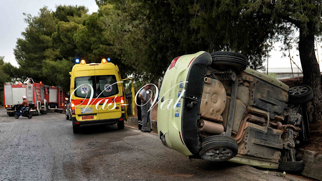 Aυτοκίνητο, εξετράπη της πορείας του και ανετράπη σημερα το απόγευμα της Δευτέρας, στην έξοδο της πόλης της Κορίνθου προς Αθήνα.